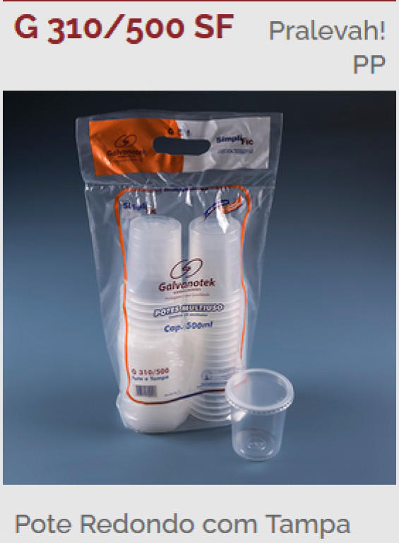 • GALV - G310/500 SF POTE 500ML REDONDO C/ TAMPA PP - CX.12X25UN