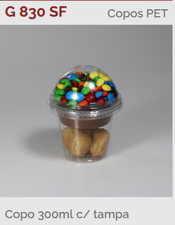 • GALV - G830 SF COPO 300ML CRISTAL C/TAMPA BOLHA S/FURO MULTIUSO PET - PT.10UN