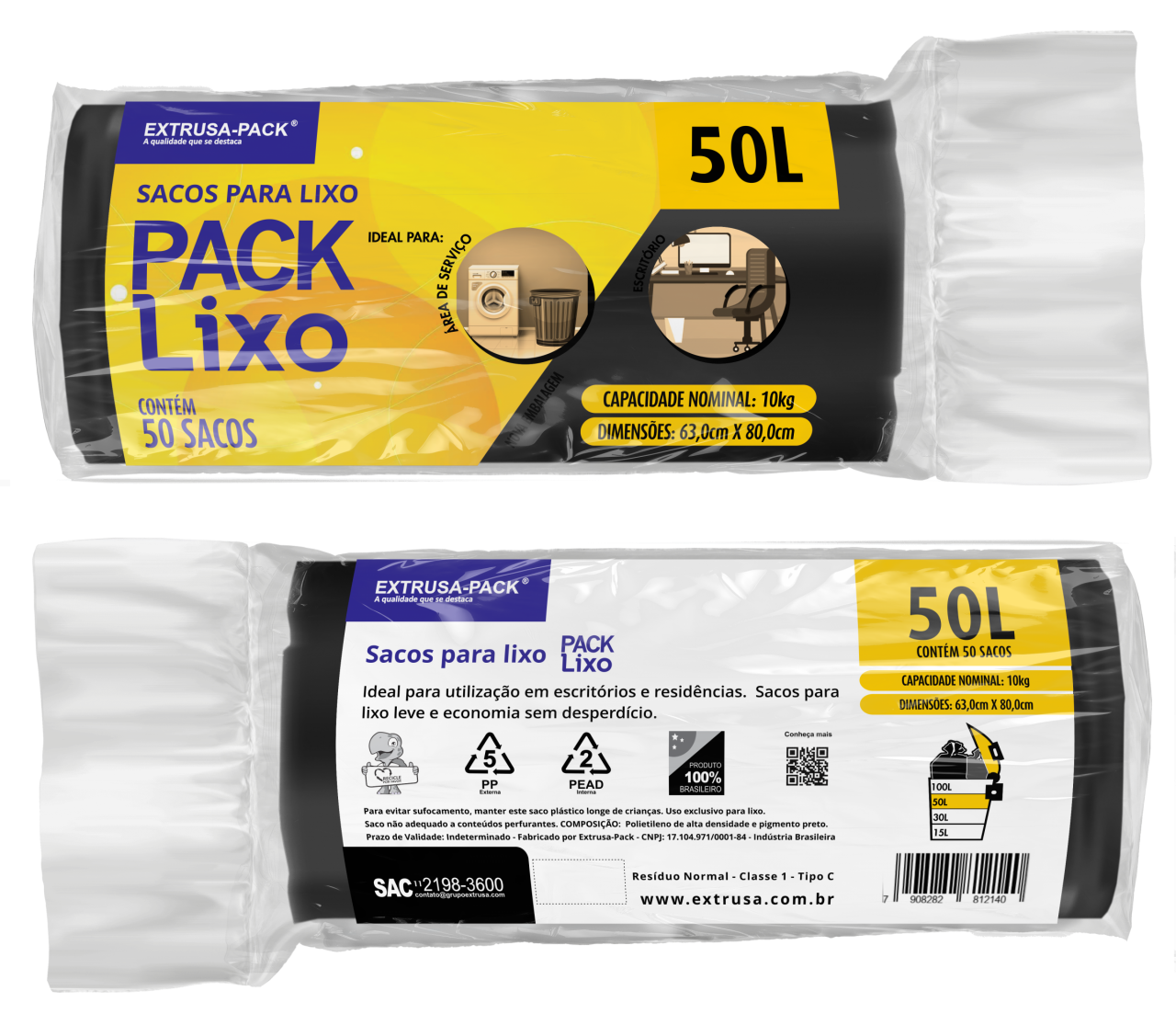 • PACK LIXO 050 LITROS PRETO 63X80 FD 10X50 UN
